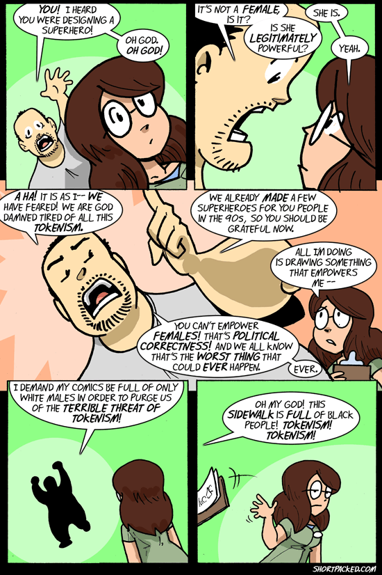 Or, en créant le Projet « Vipères », l’illustrateur et les participants font passer plusieurs messages. D’abord avec des témoignages d’hommes qui racontent de quelle odieuse façon une femme a osé refuser de coucher avec eux (entre autres), ce projet met au même niveau de souffrance une femme violée et/ou victime de harcèlement et un homme qui… s’est pris un râteau. Quel est le problème ? Le problème c’est que dans le cas du Projet Crocodiles, des femmes défendent leur droit à circuler librement dans l’espace public sans être inquiétées et à pouvoir dire non à un homme qui veut coucher avec elle sans risquer d’être forcées (et donc violées puisque forcer une personne à avoir une relation sexuelle non consentie est bel et bien un viol). À l’inverse, le Projet Vipères vise à culpabiliser les femmes qui refusent de coucher avec des hommes et à présenter les hommes comme des victimes parce qu’ils ne peuvent pas se taper toutes les femmes qu’ils veulent quand ils veulent. Dans un cas, donc, nous avons un projet qui vise à rendre plus de liberté aux femmes quand l’autre vise simplement à renforcer les hommes dans la croyance selon laquelle les femmes leur doivent du sexe, n’ont pas le droit de les quitter (sous peine d’être des salopes) ou d’être attirées par d’autres personnes qu’eux, encourageant ainsi, purement et simplement, la culture du viol et la misogynie.