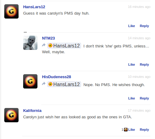 Au même moment, Mar_Lard dénonce un article écrit sur jeuxvideo.com dans lequel le rédacteur s’adresse uniquement à un public masculin pour la St Valentin. Elle lui explique en quoi c’est problématique et le rédacteur finit par changer les propos pour les rendre plus universels. Qu’un des rédacteurs « plie » devant une féministe met les forumeurs en colère et aussitôt, un topic d’insultes fait surface.